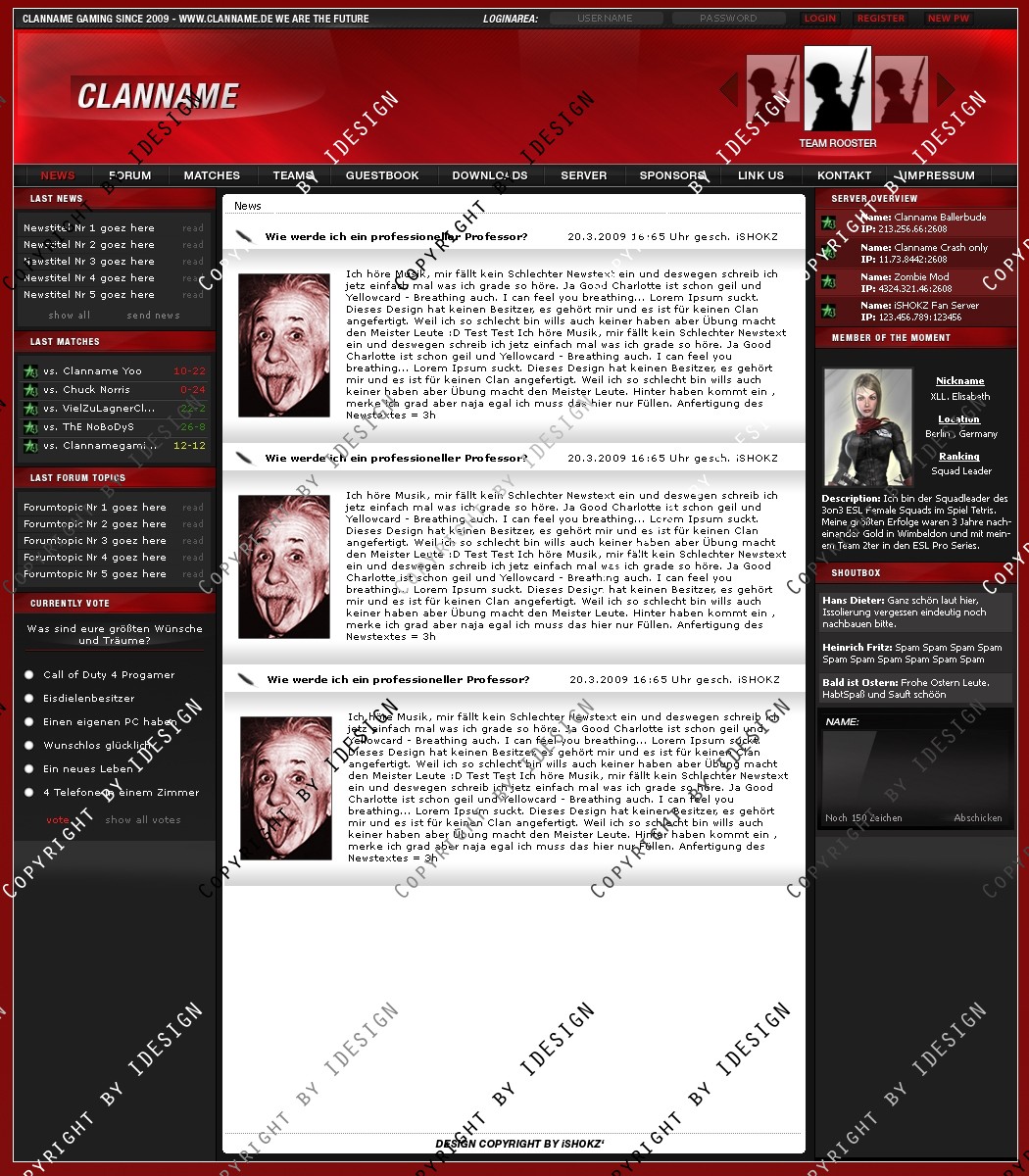Dies ist ein professionelles Clandesign. Eine übersichtliche und geordnete psd Datei mit allen vorhandenen Ebenen ist vorhanden. Bei weiteren Fragen oder Support wenden sie sich per E-mail an "[email protected]" Dieses Design gibt es auch in Blau, schaut bei meinen Produkten.