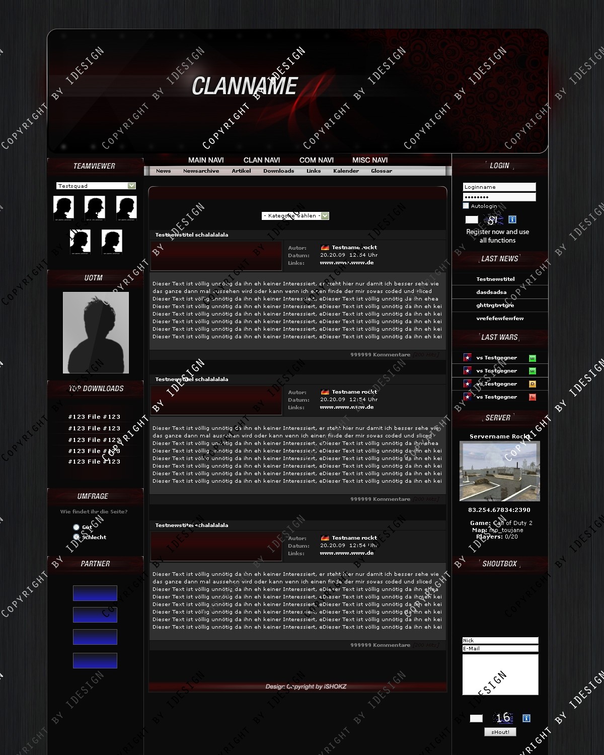 Du hast noch keinen Account auf ClanDesigns.de? Dann kannst du dich hier kostenlos registrieren!