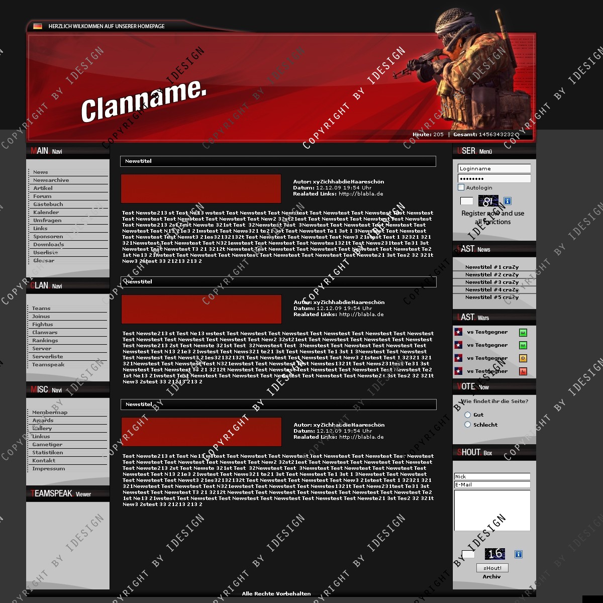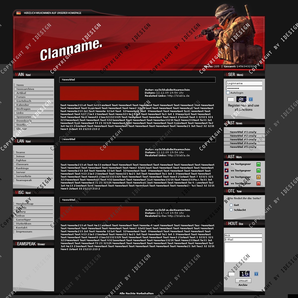 Du hast noch keinen Account auf ClanDesigns.de? Dann kannst du dich hier kostenlos registrieren!