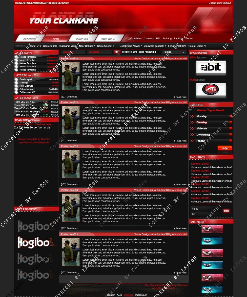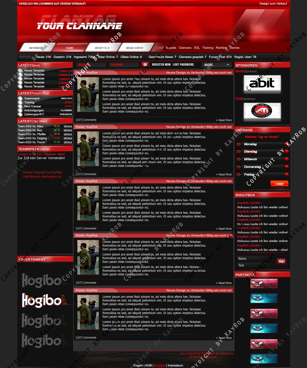 Dieses Clandesign darf OHNE genehmigung von mir Robert Erdmann nicht zum Free Download auf anderen Webadressen angeboten werde. Das weiter verschicken von Design.psd ist auch UNTERSAGT. Sollte es dies der Fall sein, werde ich Rechtliche Schritte einleiten und dies Ahnden!