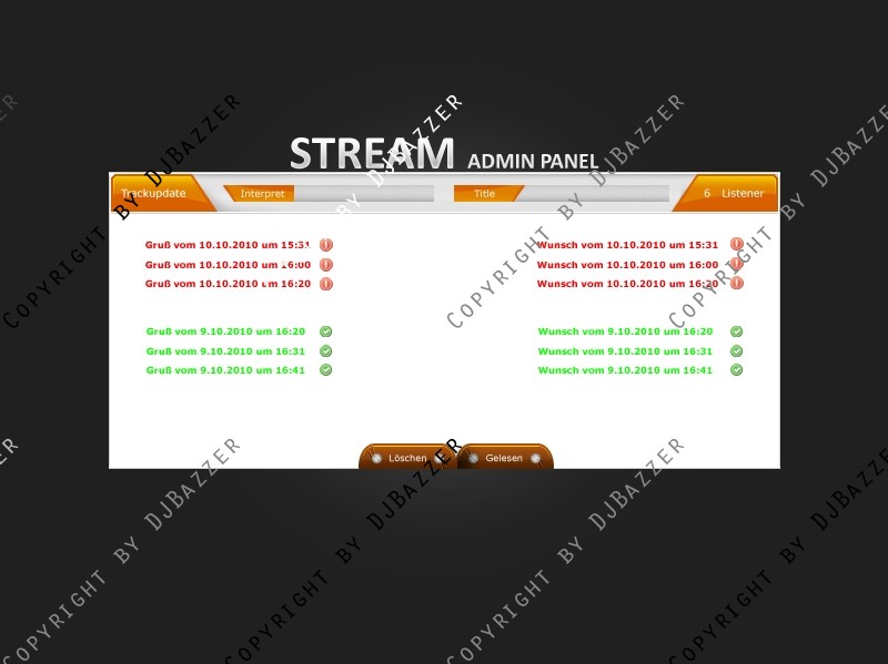 Einmal die Admin Seite, die die Moderatoren/Deejays oder Generell Admins einsehen können, wo Sie die Gruß und Wunschbox auslesen können und Tracklist schreiben können, auch da, gibts eine Listener Anzeige.
