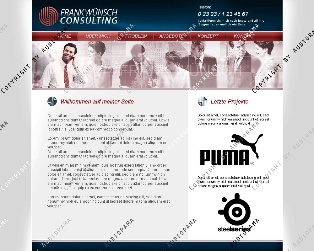 Hinweis: Hierbei handelt es sich nur um das Design, eine Anpassung an ein CMS-System ist nicht im Preis enthalten!