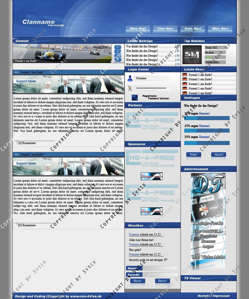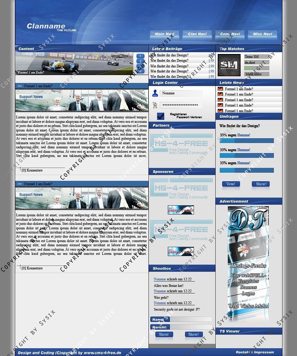 Du hast noch keinen Account auf ClanDesigns.de? Dann kannst du dich hier kostenlos registrieren!