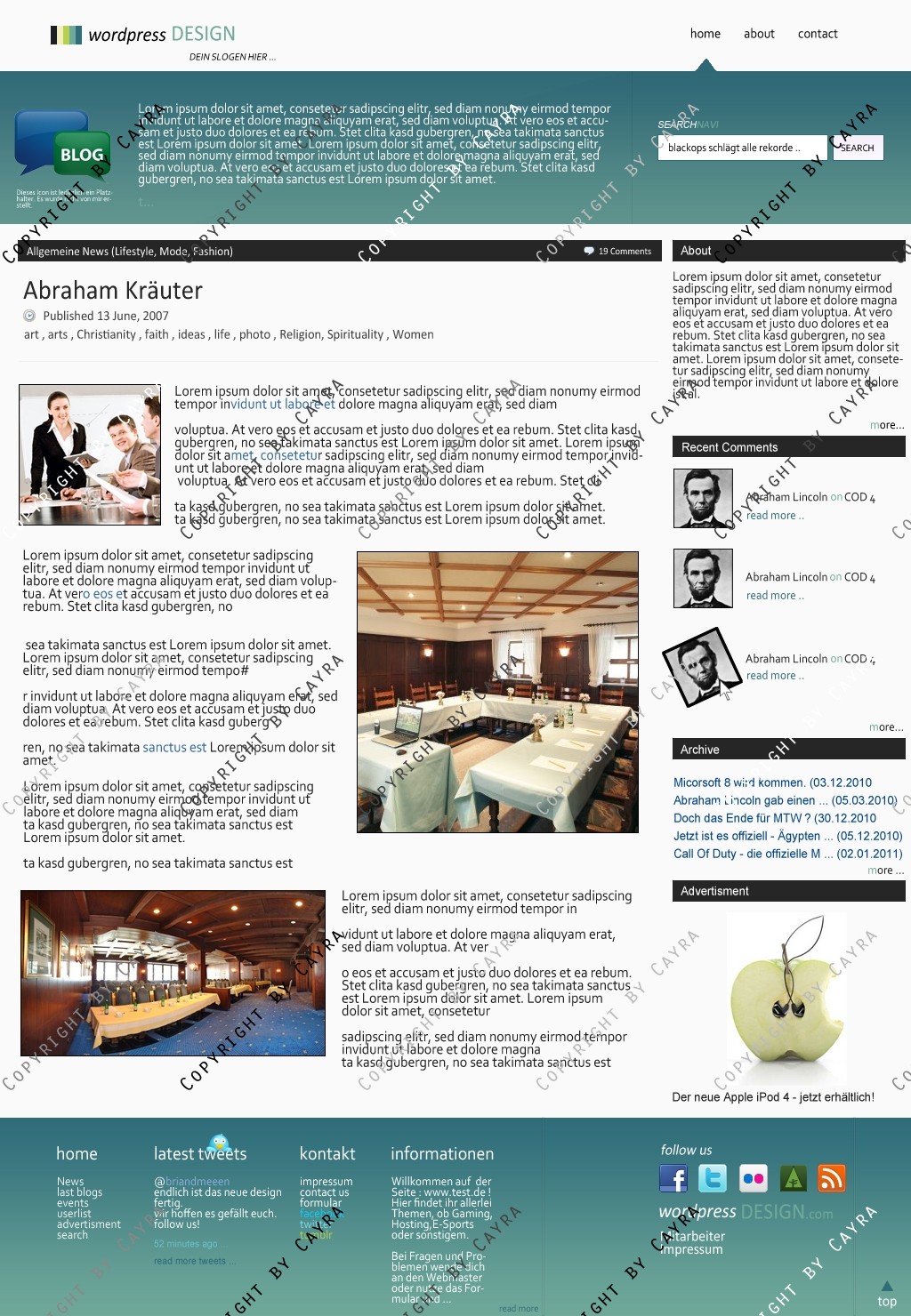 Hinweis: Hierbei handelt es sich nur um das Design, eine Anpassung an ein CMS-System ist nicht im Preis enthalten!