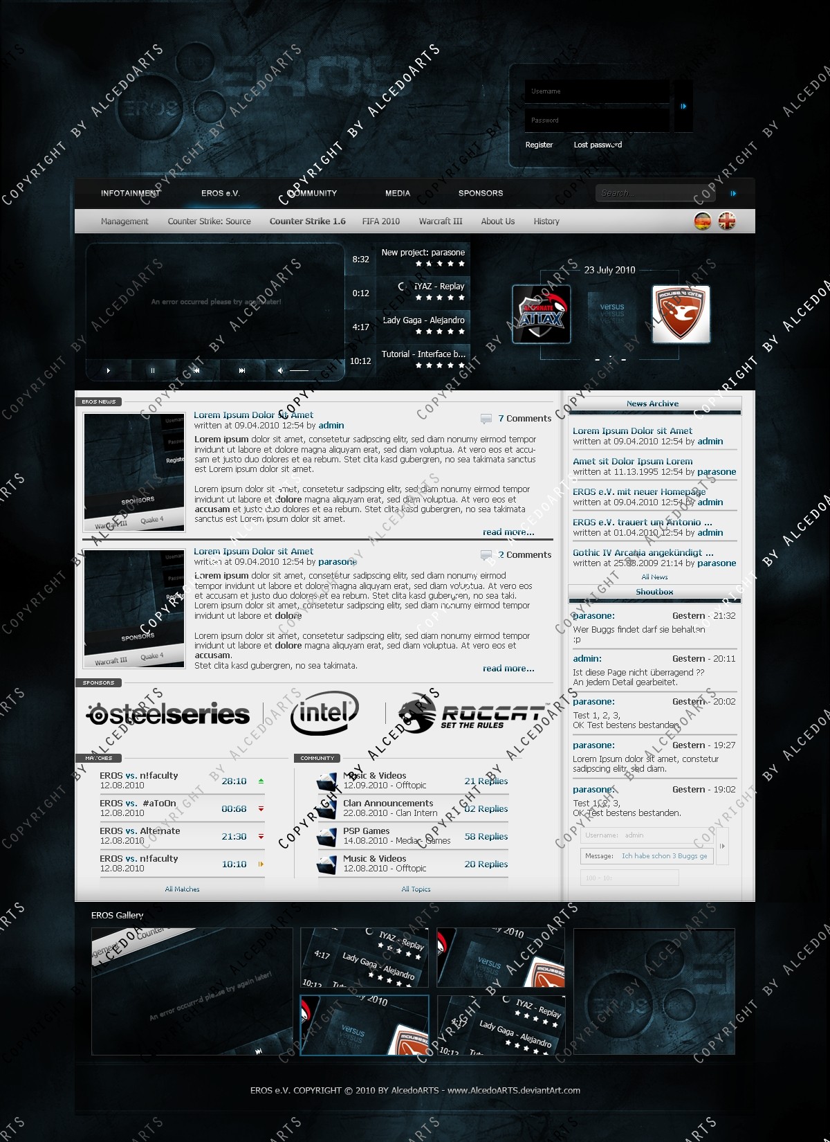 Ich verkaufe folgendes Clan Layout mehrmals oder exklusiv zu einem für mich angemessenen Preis-/Leistungsverhältnis! Verkauft werden lediglich die .psd-Dateien des jeweiligen Templates, das bedeutet also, dass kein Code bzw. Slicing im Preis inbegriffen ist.