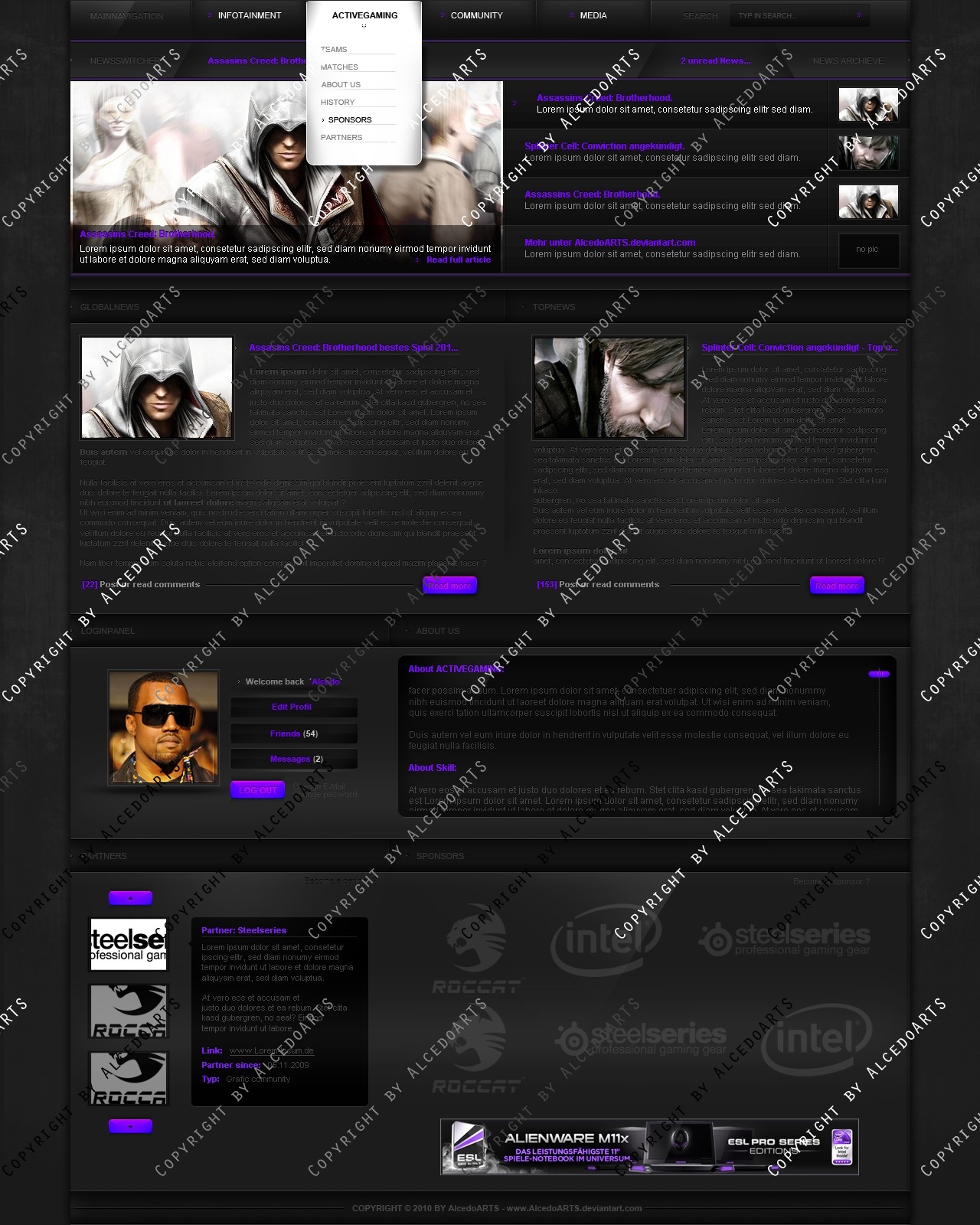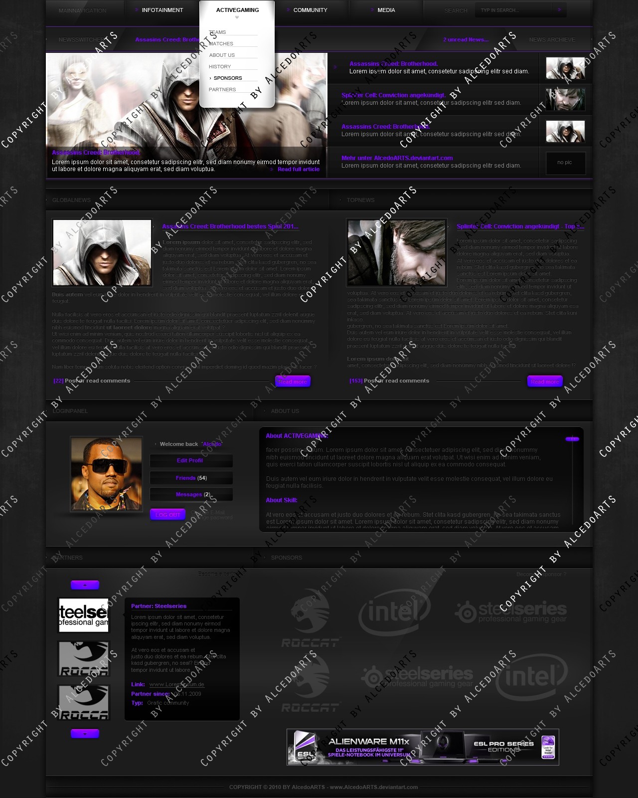 Ich verkaufe folgendes Clan Layout mehrmals oder exklusiv zu einem für mich angemessenen Preis-/Leistungsverhältnis! Verkauft werden lediglich die .psd-Dateien des jeweiligen Templates, das bedeutet also, dass kein Code bzw. Slicing im Preis inbegriffen ist.