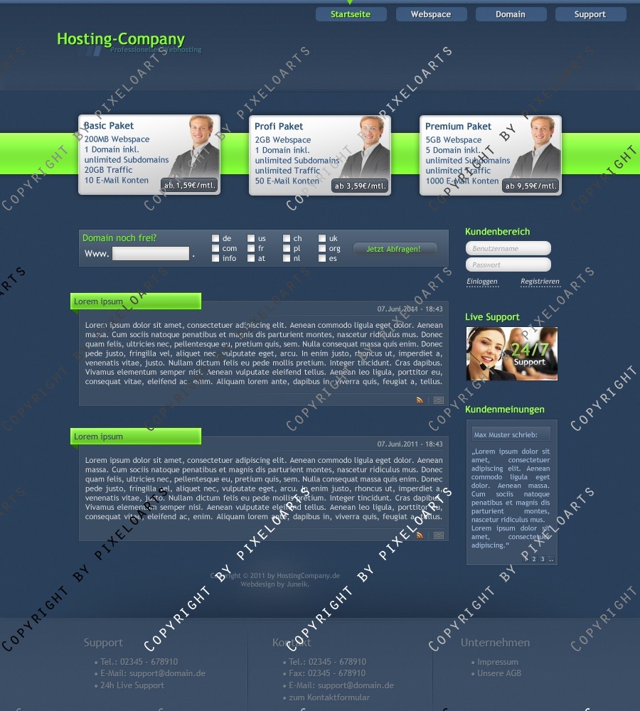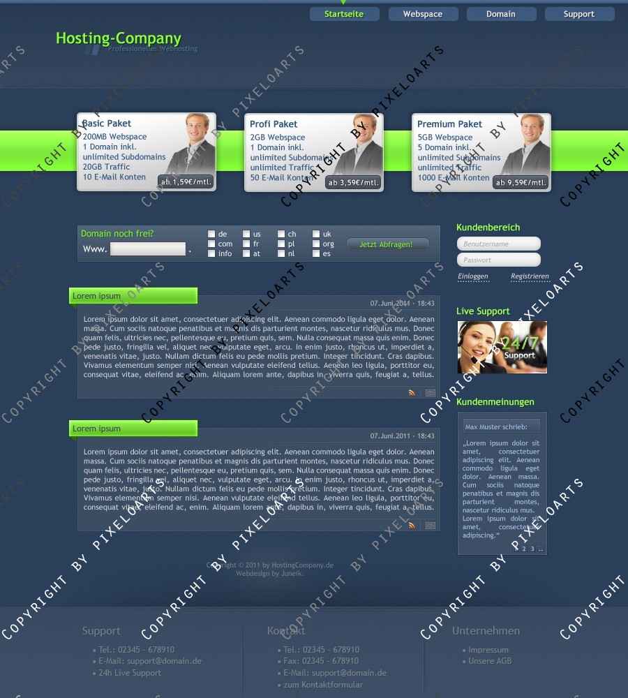 Hinweis: Hierbei handelt es sich nur um das Design, eine Anpassung an ein CMS-System ist nicht im Preis enthalten!
