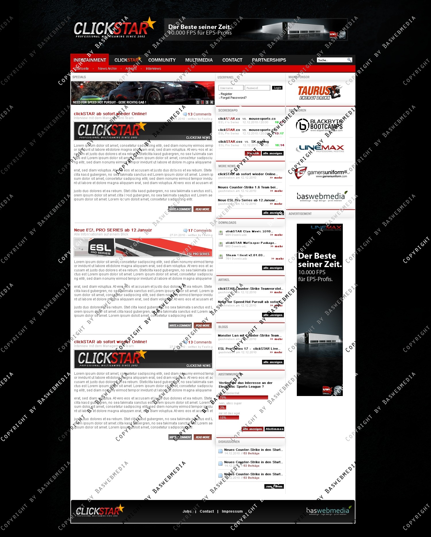 Das "clickSTAR" Logo dient nur als Platzhalter und kann gegen einen kleinen Aufpreis ausgetauscht werden oder falls gewünscht kann auch ein neues Individuelles Clanlogo erstellt werden.