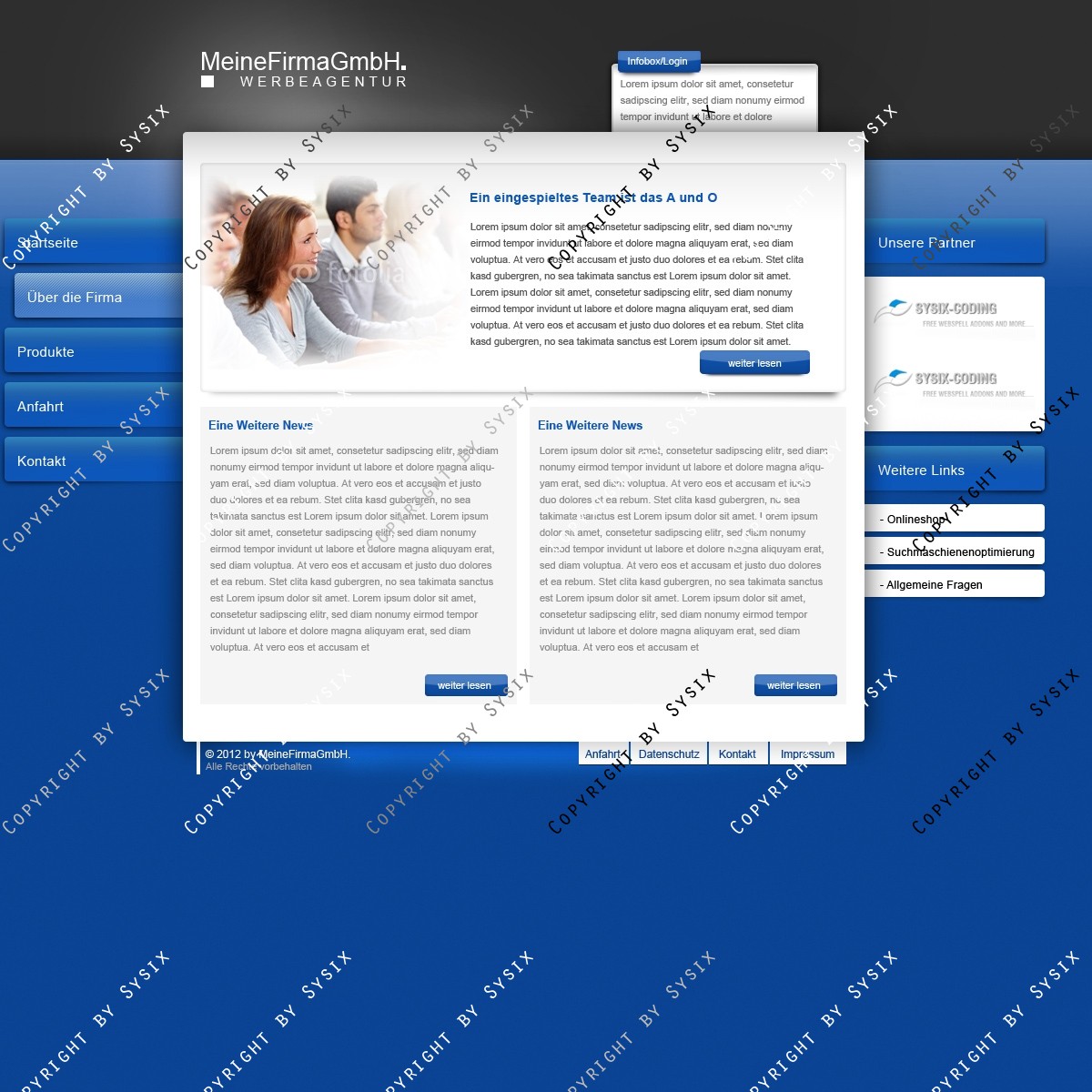 Hinweis: Hierbei handelt es sich nur um das Design, eine Anpassung an ein CMS-System ist nicht im Preis enthalten!