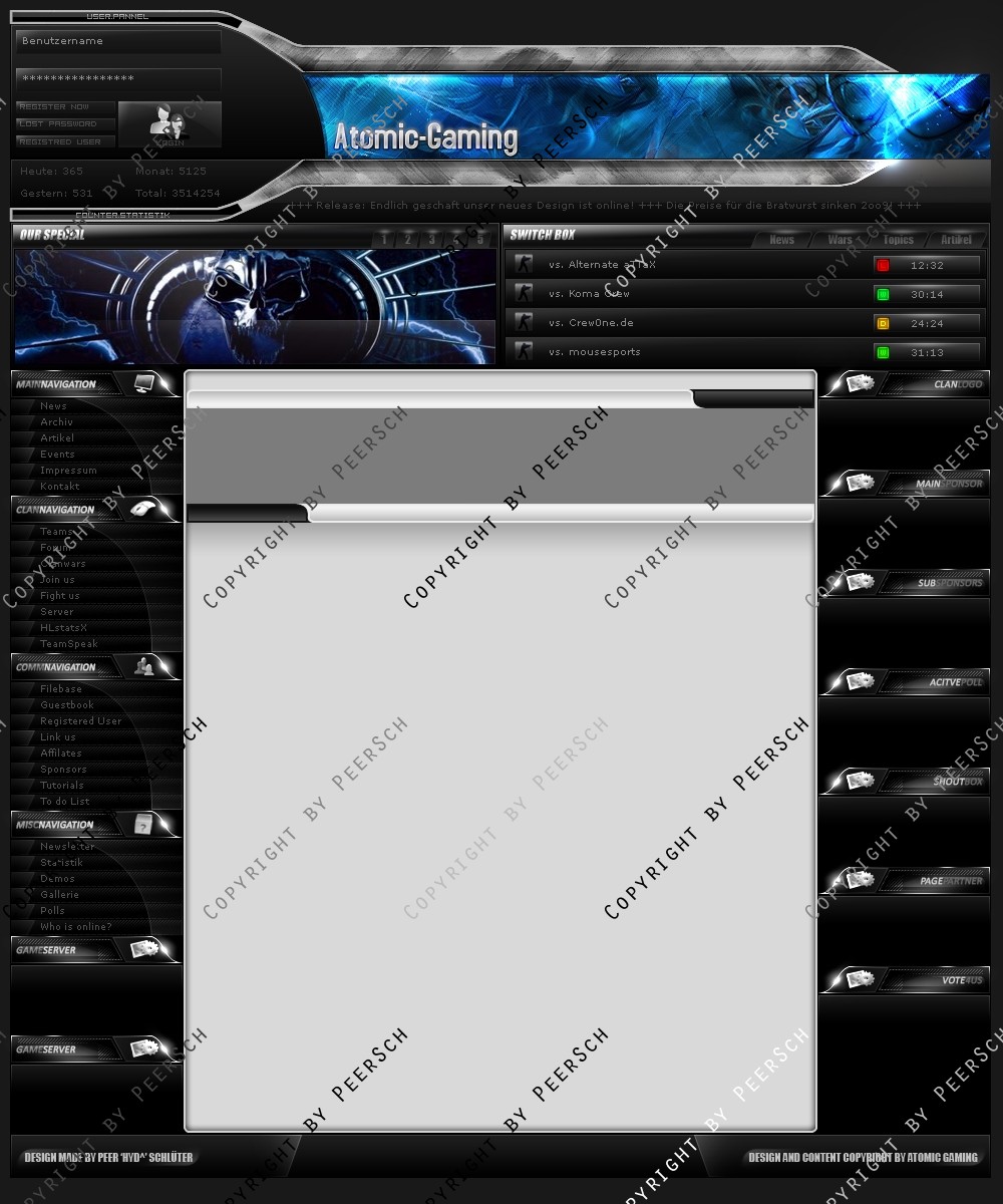 Was Sie hier kaufen ist lediglich die PSD Datei, gerne kann ich es Ihnen gegen einen Aufpreis von 13€ an ein CMS Anpassen, zur Auswahl stehen hierbei: webSPELL, Clansphere, Teklab, Devilz und andere CMS auf Anfrage ohne Aufpreis.