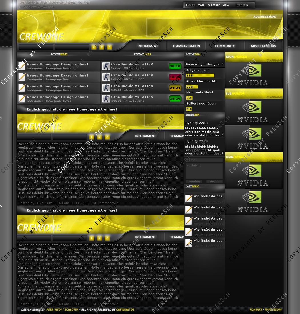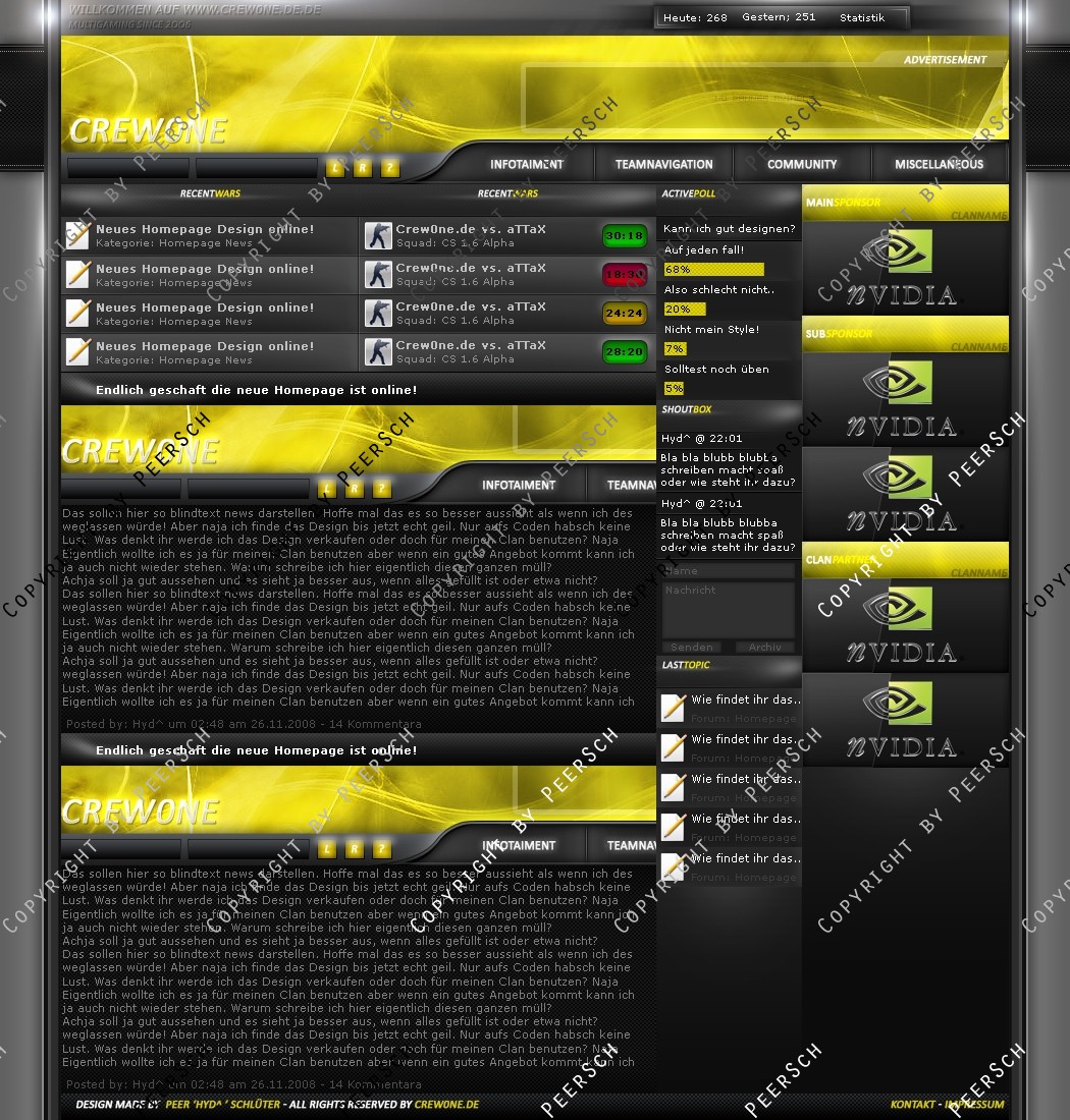 Was Sie hier kaufen ist lediglich die PSD Datei, gerne kann ich es Ihnen gegen einen Aufpreis von 13€ an ein CMS Anpassen, zur Auswahl stehen hierbei: webSPELL, Clansphere, Teklab, Devilz und andere CMS auf Anfrage ohne Aufpreis.