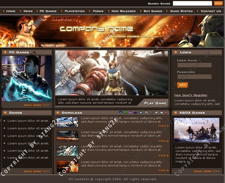 Dieses Design ist optimal für Gamercommunitys oder Clans. Das Design ist in braun und kann danke der mitgelieferten PSD und der Schriftarten nach eigenen Wünschen verändert werden.