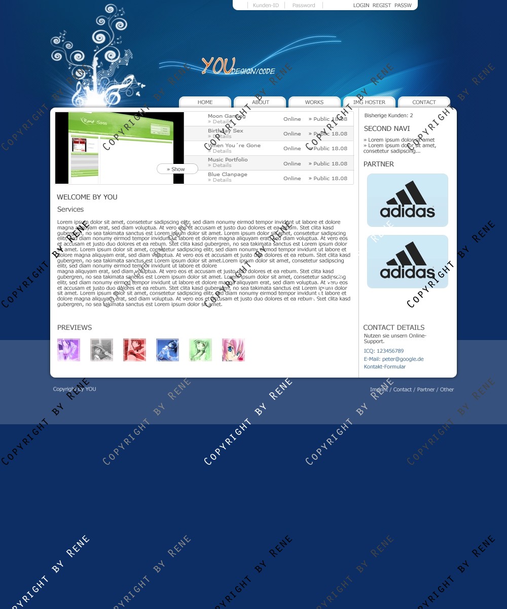 Ein Blaues Template. Es kann für Code oder Design Arbeiten genutzt werden. In dem Design ist ein Work Slider drinne.