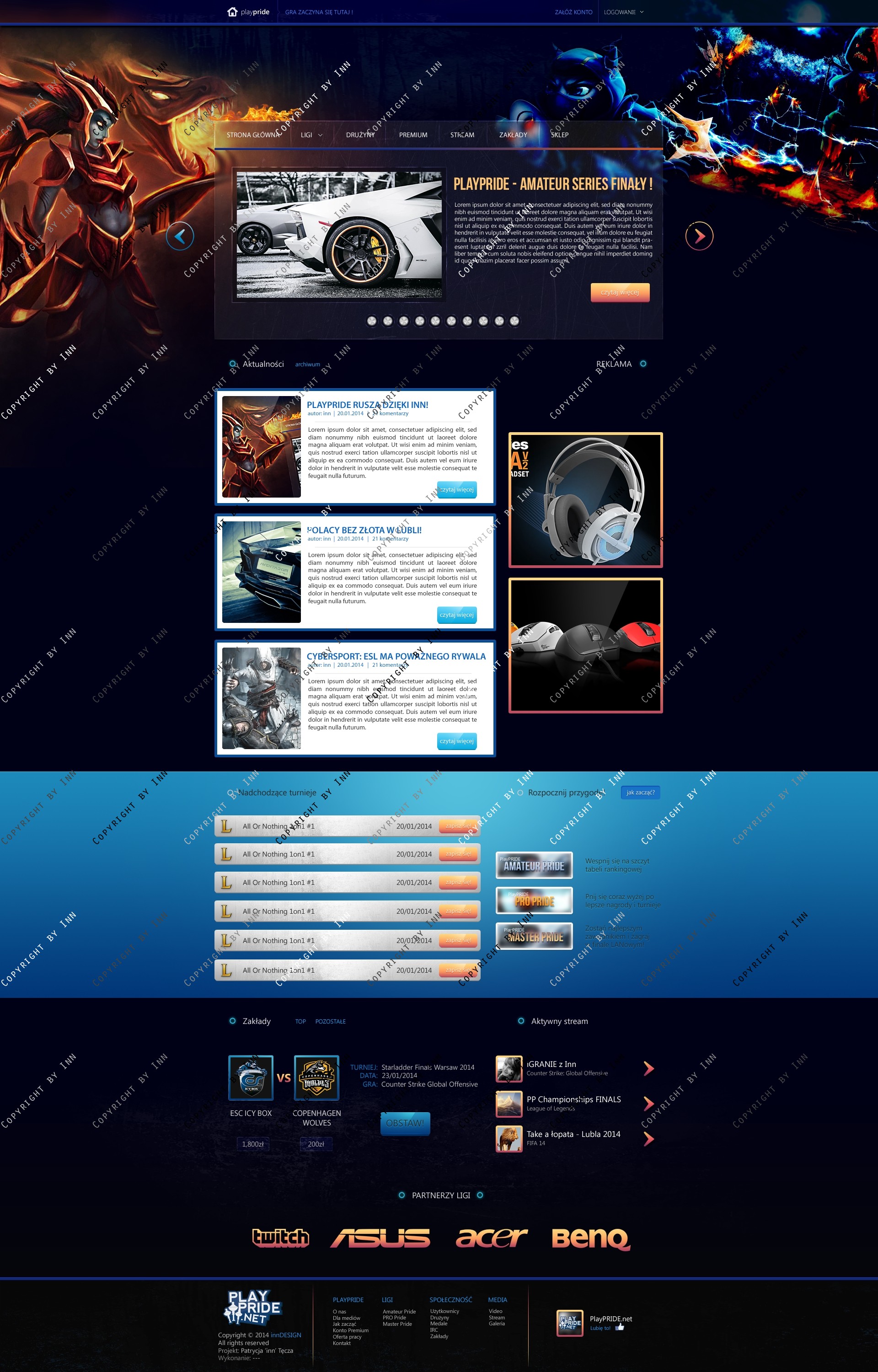 - top navi with login panel (it's in PSD)