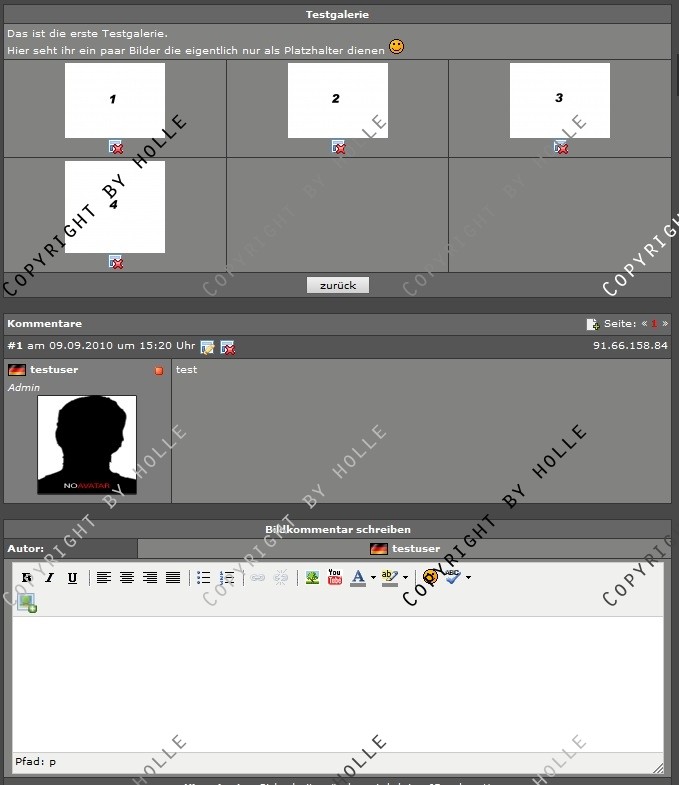 Neben der normalen Clangalerie, welche jeweils komplett kommentiert werden kann, können auch in den Usergalerien jeweils die einzelnen Bilder kommentiert werden.