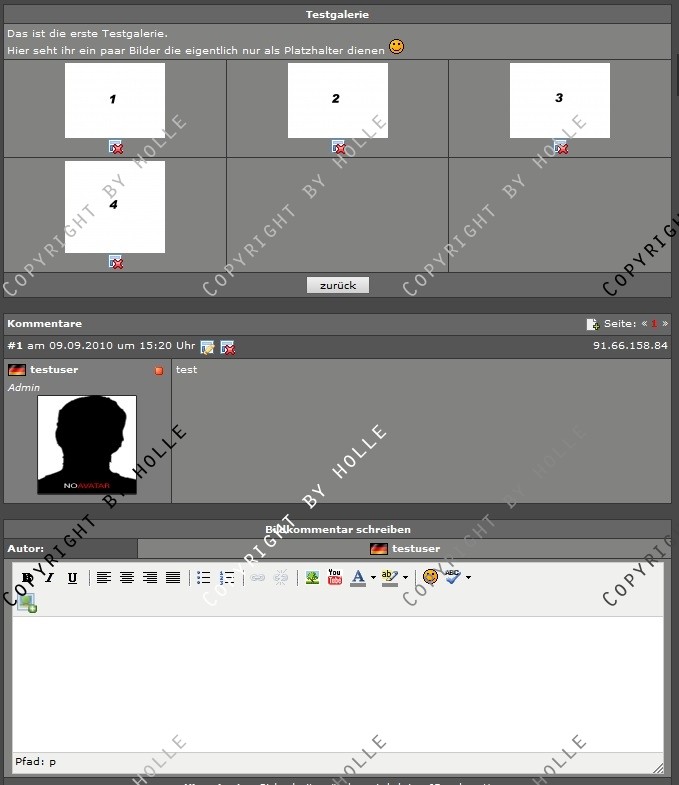 Damit man auch die Bilder eurer Galerien kommentieren kann, habe ich hier ein Addon gecodet, welches euch diese Funktion zur Verfügung stellt.