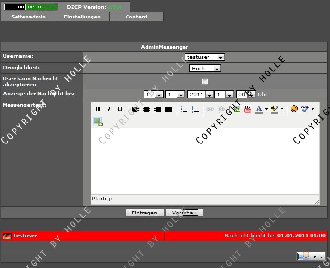 Hier nun mein Ergebnis: das AdminMessenger Addon
