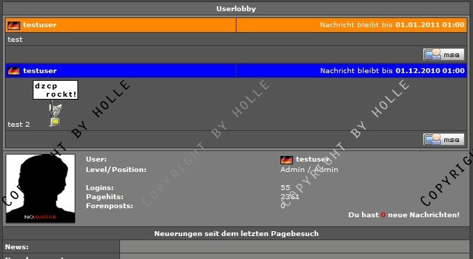 + ... sehen die Nachricht(en) direkt in der Userlobby