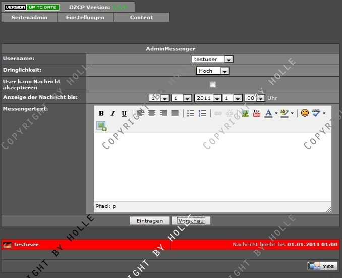 + ... können ein Datum festlegen, bis wann die Nachricht bei dem entsprechenden User angezeigt werden soll