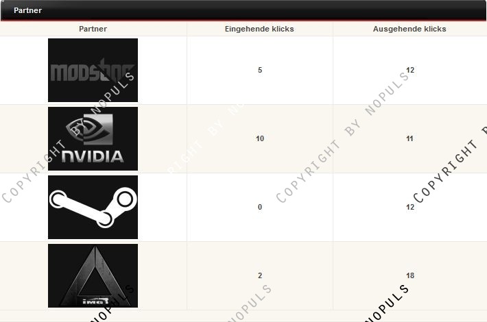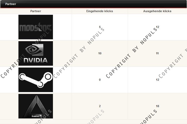 Dieser Mod erlaubt euch die ein und abgehenden Klicks von euren Partnern zu zählen, damit ihr sehen könnt welche Partnerschaften sich lohnen und welche nicht. Dabei werden nur die User gezählt die neu auf eure Homepage vermittelt wurden. Es wird beim erstellen bzw. beim editieren eines Partnerbuttons automatisch ein Link für den Partner erstellt den dieser auf seiner Webseite einbinden muss. Desweiteren lässt sich bei jedem Partner einstellen wohin der weitergeleitet werden soll, wenn er auf die Homepage kommt.