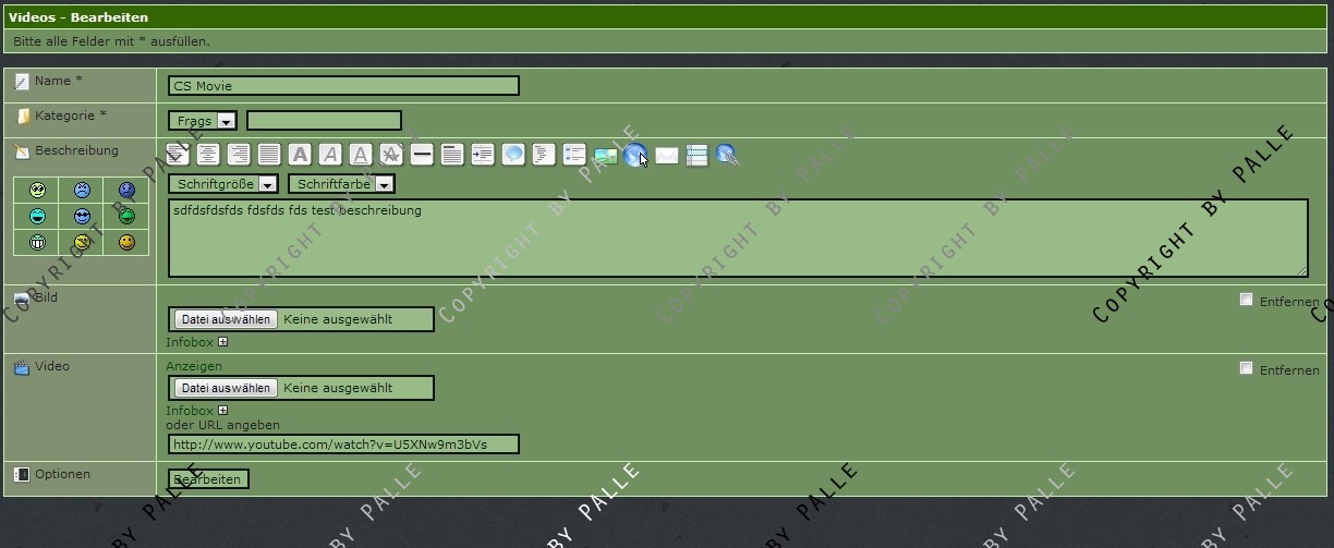 Man kann eigene Videos hochladen (flv Format) oder aber Youtube URLs angeben.