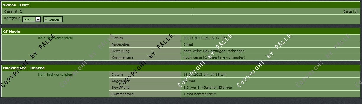 Es werden 3 Navlisten mitgeliefert (letzten X anzeigen, ein random video sowie das neuste video können ausgegeben werden).