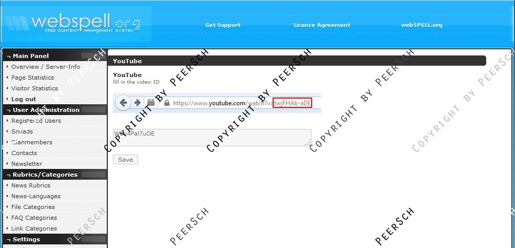 Das Video kann im gewohnten Admincenter von webSPELL geändert bzw. festgelegt werden. Eine kinderleichte Bedienung, auch sehr unerfahrene leute werden mithilfe der beigelegten Installationsanleitung mühelos dieses Addon einbinden können.