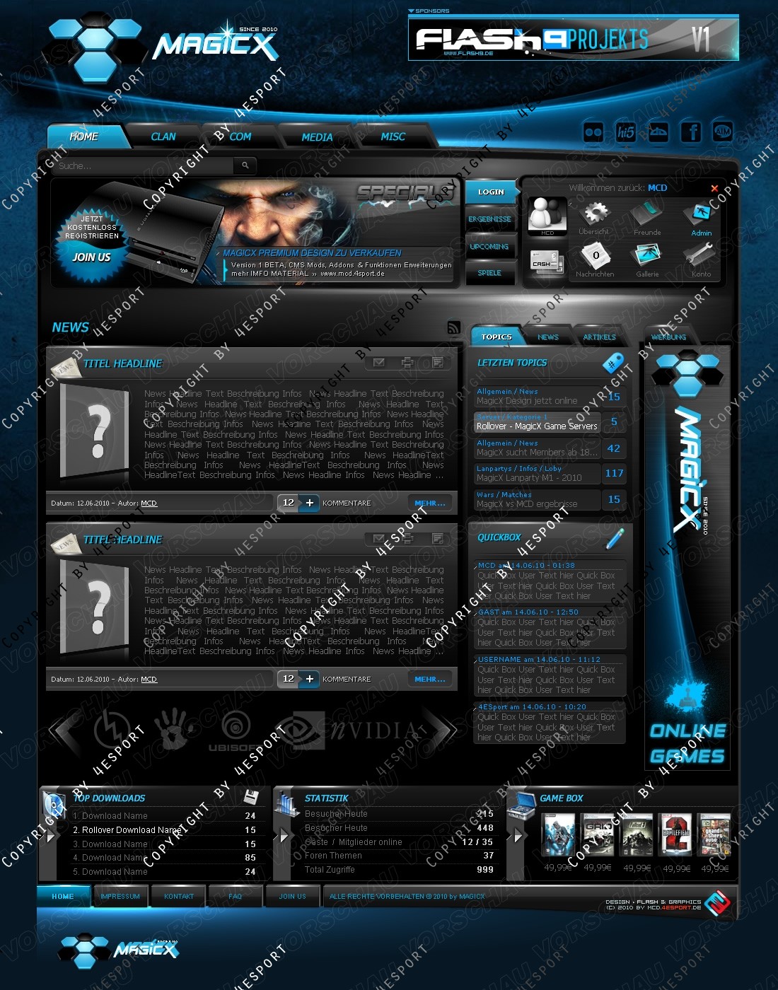 NEU: Flash Header Exklusiv inkl. Ihre eigenen Graphiken + Clanlogo (müssen in PSD, PNG vorhanden sein)