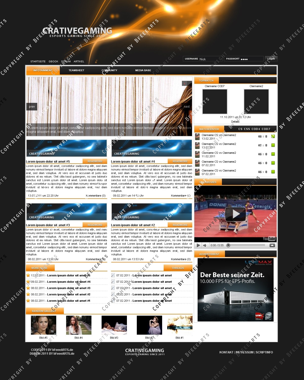 - modifizierter Newsbereich mit "2 spalten News" "last news" "last Board" "gallery"