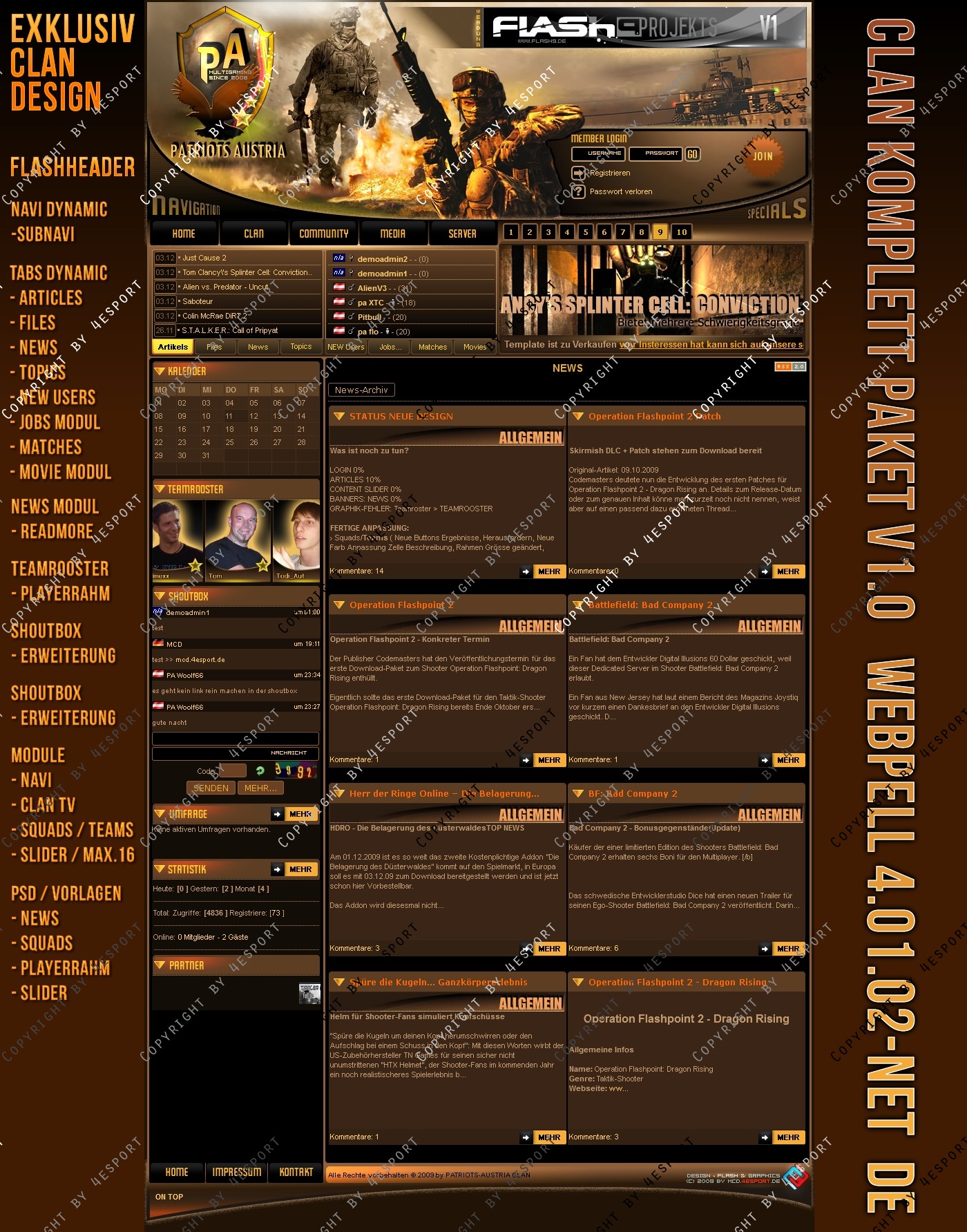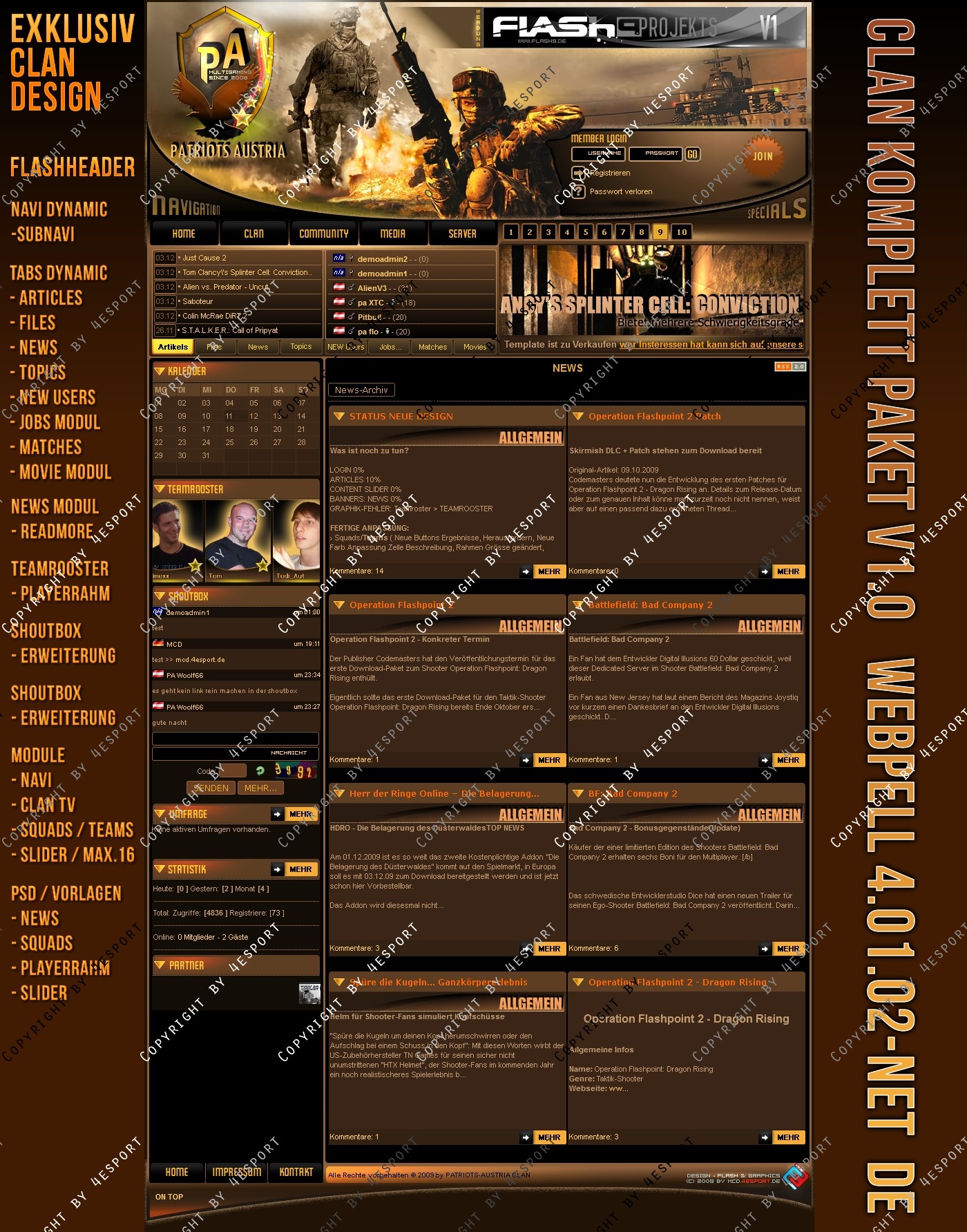 Design PSD Inkl. : News-Vorlage, Squads-Teams-Vorlage, Slider-vorlage, PA-Logo, Header- Links (hinter Logo der graphik)