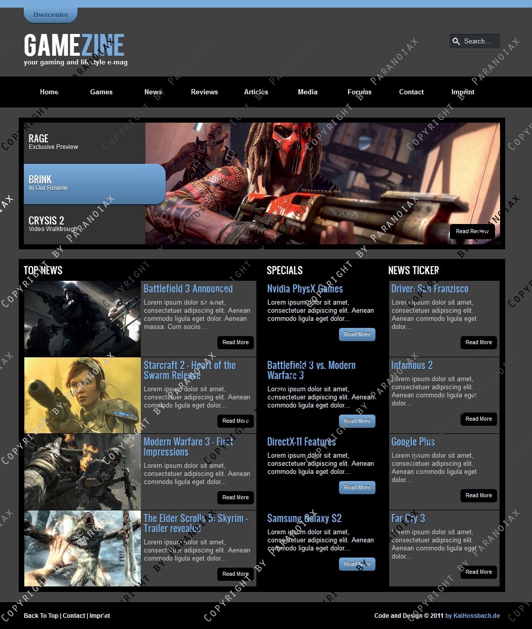 Auch als HTML Template erhältlich: http://www.clandesigns.de/templates/2748/gamezine-html5-css3-template/