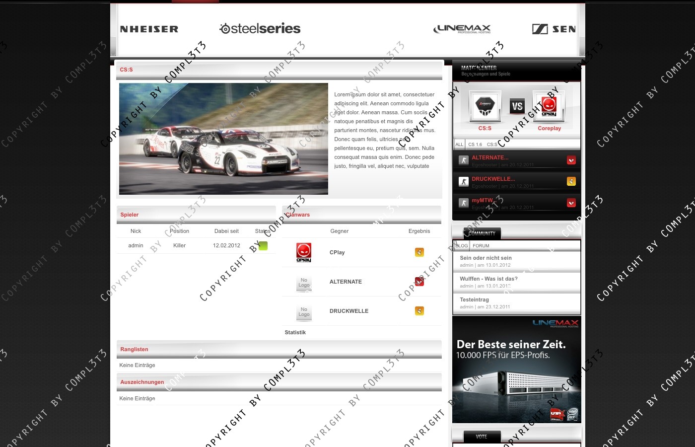 Zusätzlich dazu wurden alle hier nicht aufgeführten Ansichten einschließlich des Verwaltungsbereiches per CSS so formatiert und gestaltet, dass weder Sie noch Ihre User bemerken werden, dass es sich hierbei um das Clansphere CMS handelt.