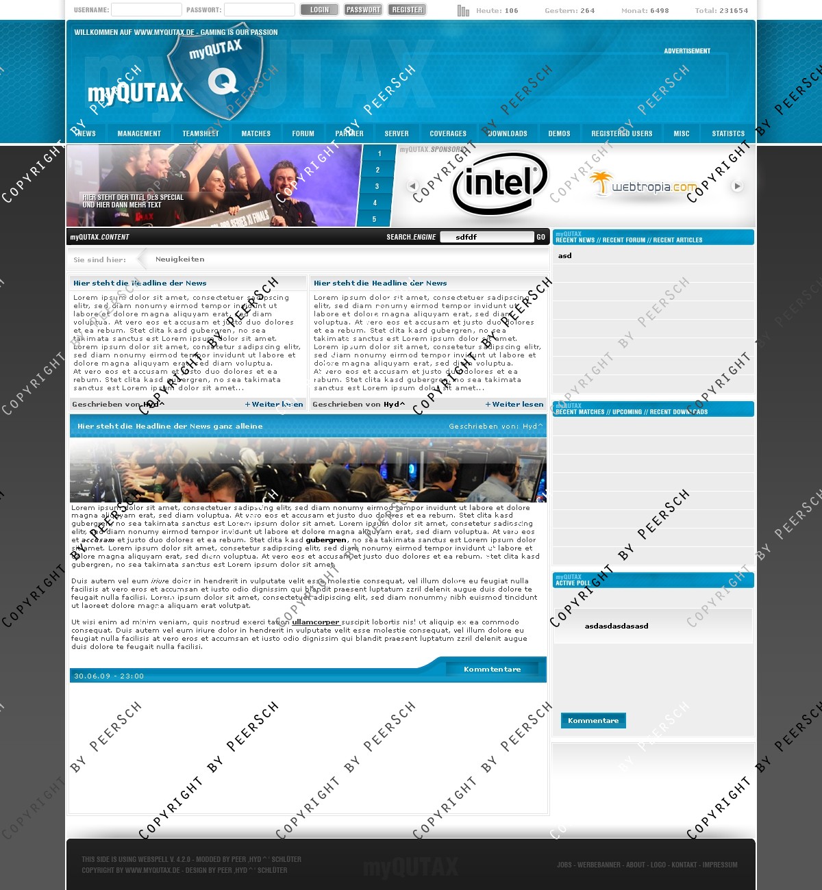 Das Template ist sehr übersichtlich gestaltet und modern. Zudem gibt es noch viele Extras beim Kauf! Das Template wurde auf webSPELL 4.2.* angepasst. Das bedeutet es ist mit jeder webSPELL version ab 4.2. aufwärtskompatibel.