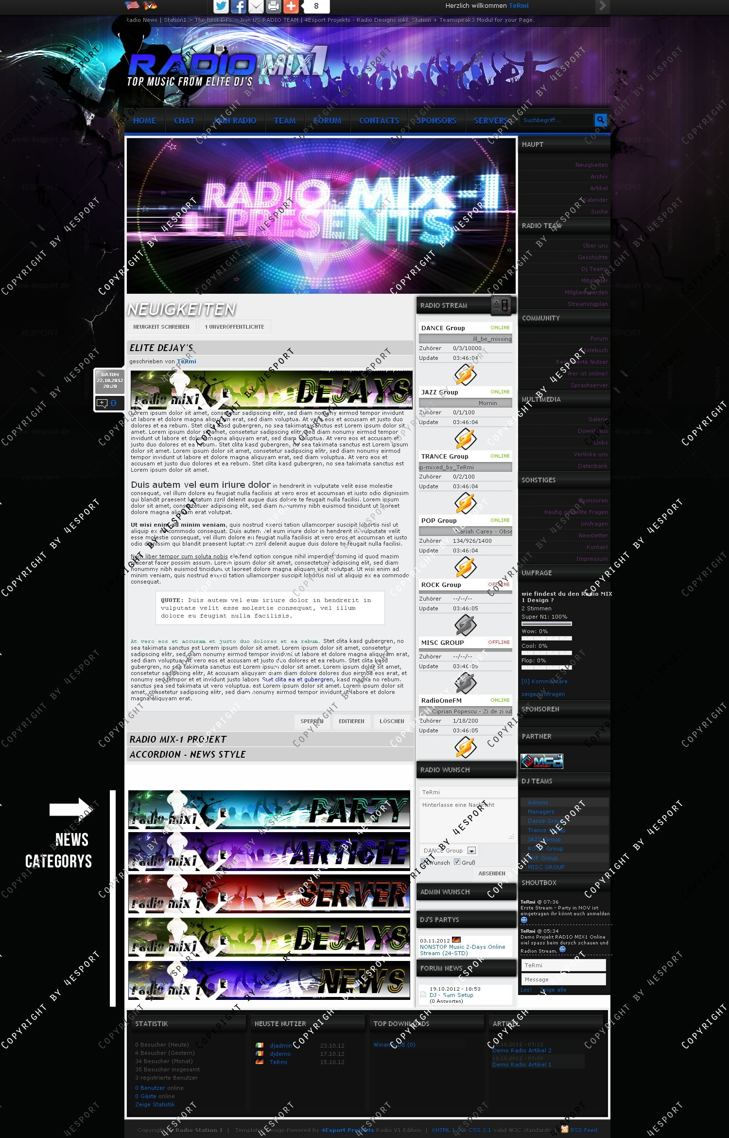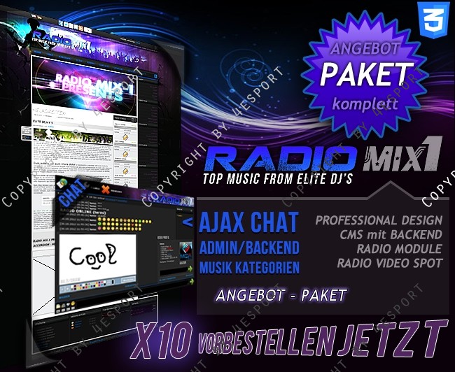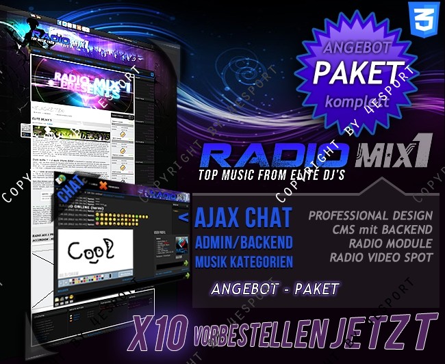 • CMS WEBSPELL + RADIO UPDATE V1.0 (Hier sind alle Exklusiven Module zu dem Design inkl. Installationsdienst als PAKET vorhanden.)