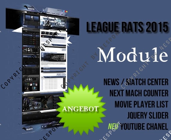 •    CMS WEBSPELL + League V1.0 (Hier sind alle Exklusiven Module zu dem Design inkl. Installationsdienst als PAKET vorhanden.)