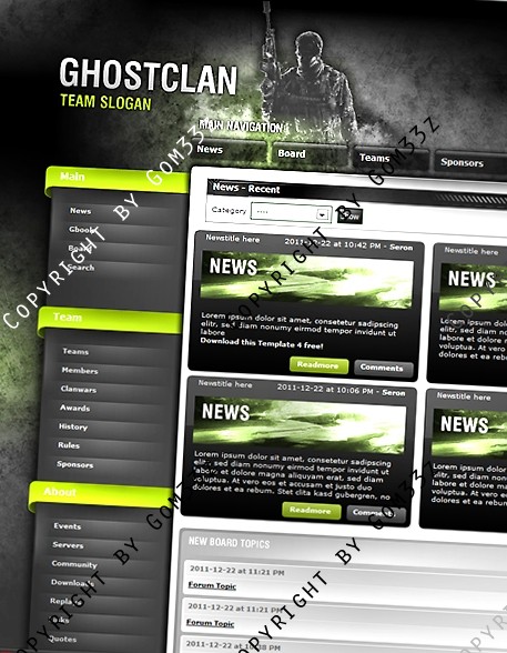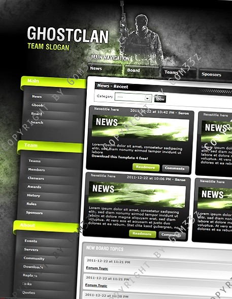 Wir verkaufen ein sehr schönes Ghost Clan Premium Template Design angepasst an die aktuelle ClanSphere Version: 2011.3