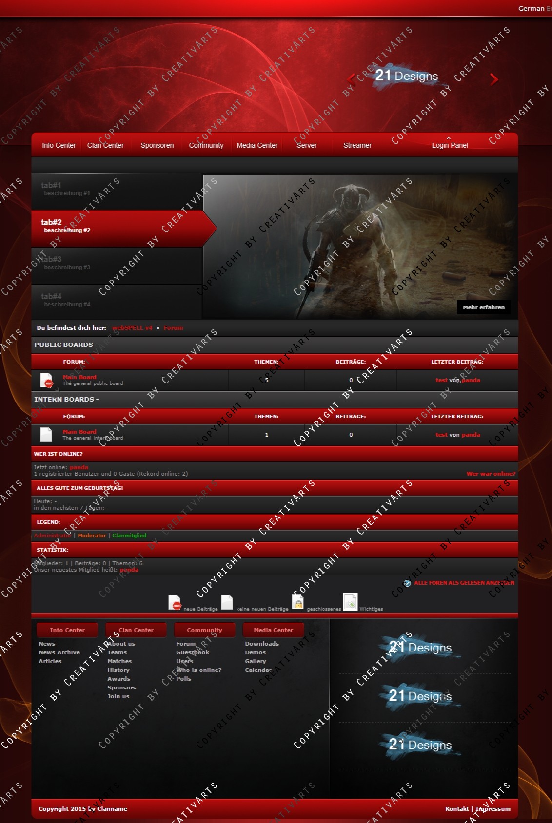- Sie erhalten hier einem Professionellen Design, Programmiert, Implementiert und Vollständig angepasst an webSPELL CMS ab Version: 4.2.4 +