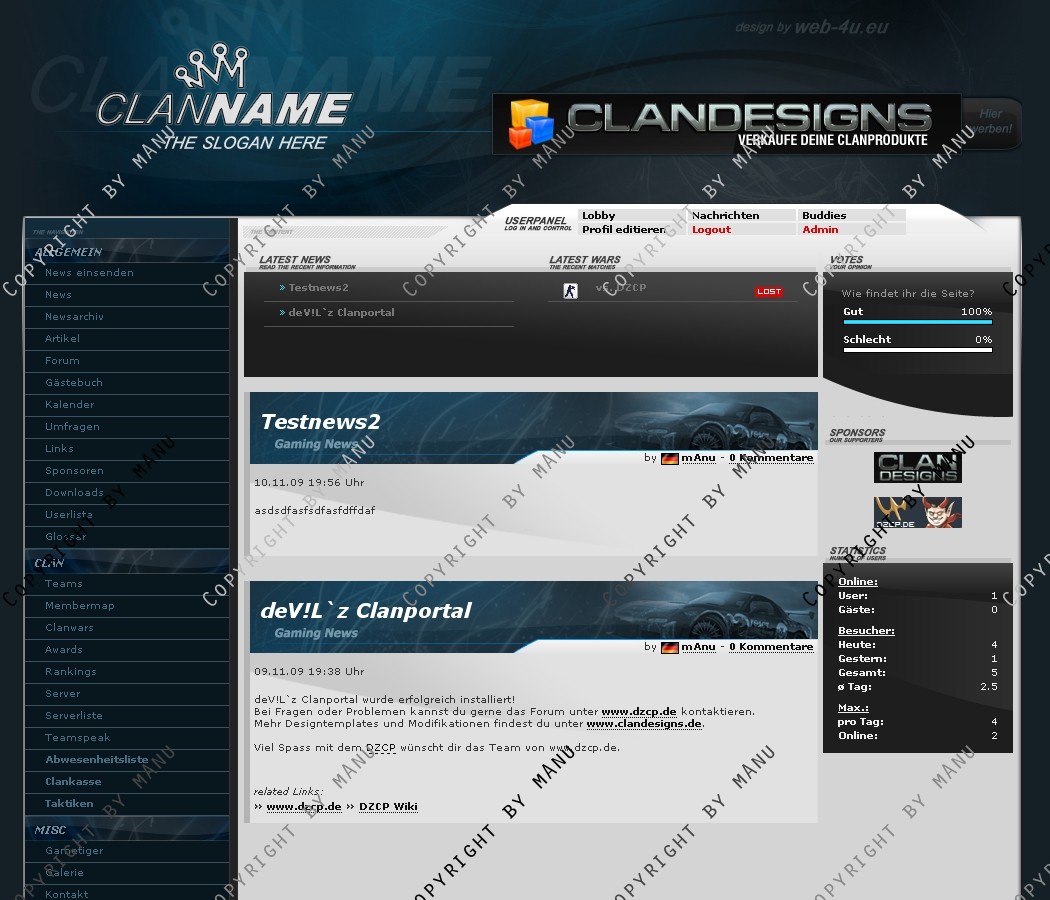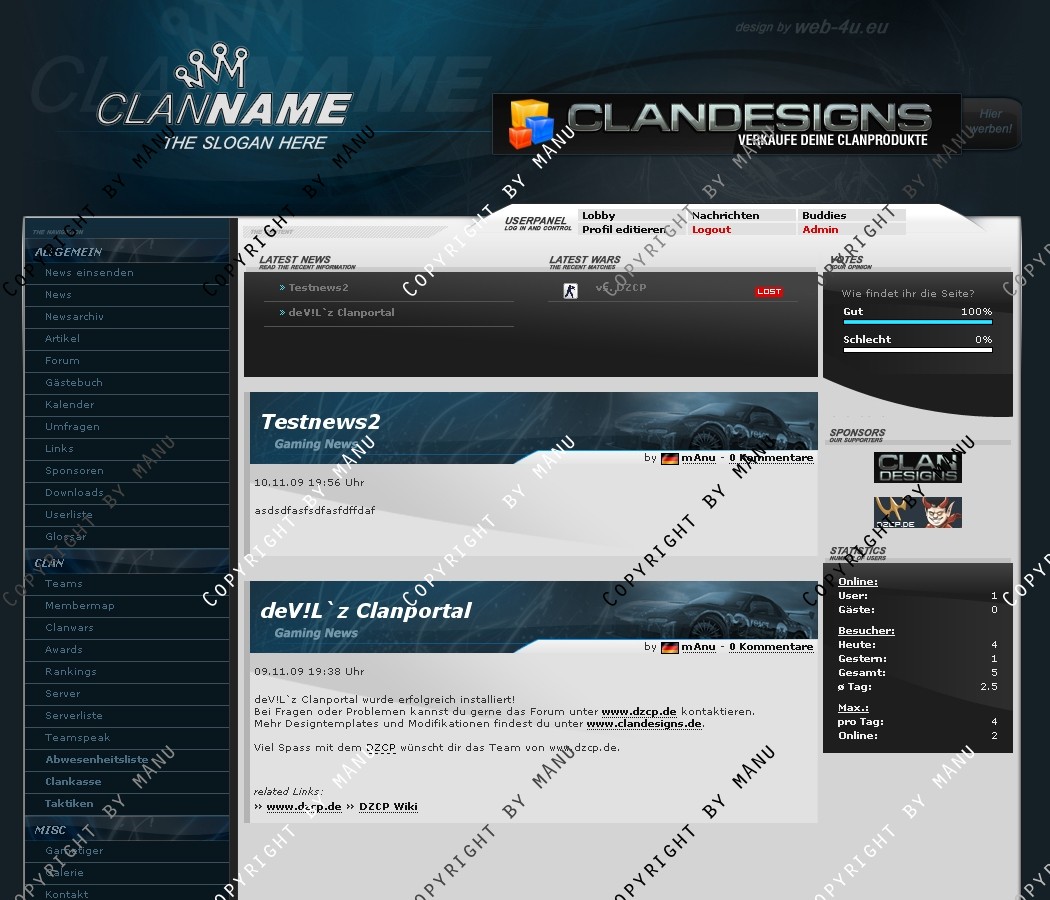 Das Template ist an das Content Management System DZCP angepasst und vollständig implementiert. Alle relevanten Elemente sind angepasst und zusätzliche Module sind auch erhältlich. Im Paket enthalten sind folgende Bestandteile:
