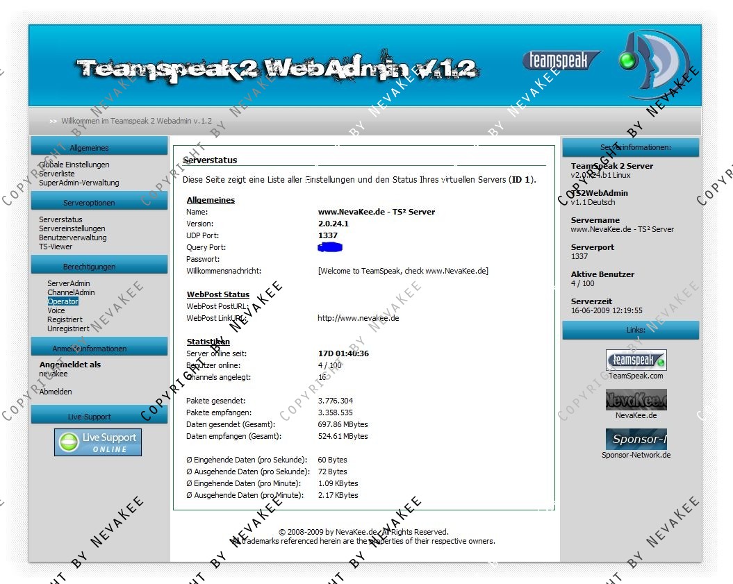 Kostenloses Webinterface für euren Teamspeak Server.